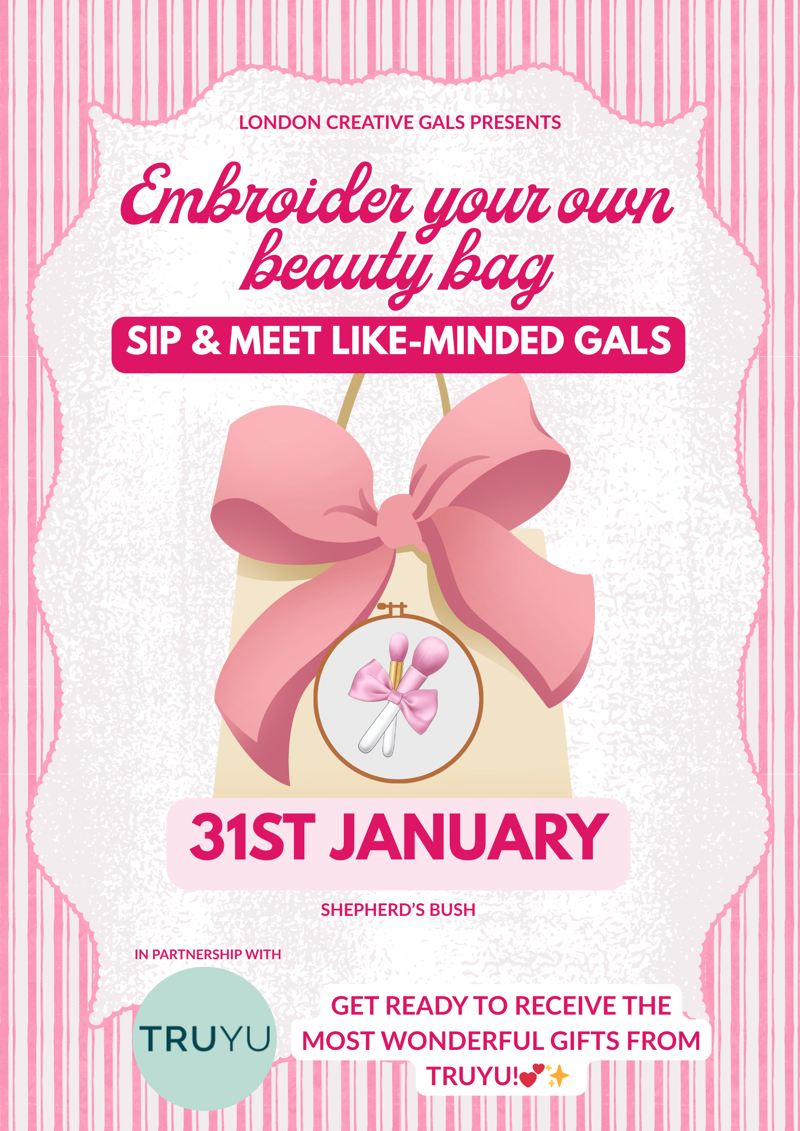 We’ve added a special touch to make the day even more memorable: every participant will receive a gift from TRUYU (the super cool beauty tools brand) at the end of the event. A little something from us to you, because you deserve it!