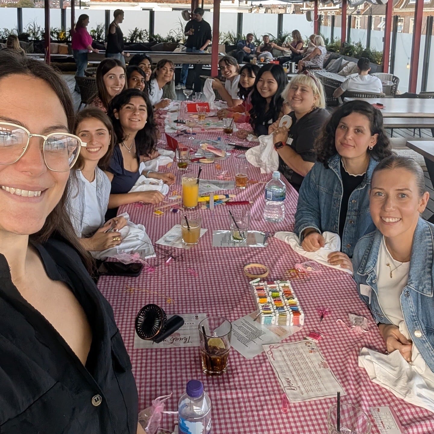 Thank you so much for running the embroidery beauty bag workshop for my friends hen party. The team are just wonderful, from the communication during organisation, ease of paying and ensuring everything was ready for the day! On the day we had a lovely private space and Francesca delivered our session and was just so lovely and helpful. It was a great activity as there wasn’t too much watching or instructions but Francesca helped us each individually as we did it. The set up was beautiful and the day was so special. I could barely thread a needle at the start and ended with a lovely piece and keen to do some more! I’d love to book London Creative Gals again for a private event or go to their public events. Thanks so much, Ann x